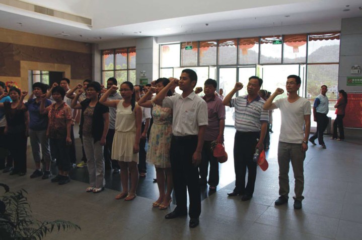 2013年7月4日,我司黨支部組織黨員共20人赴梅州市葉劍英故居重溫紅色歷史,增強黨性修養。在葉劍英元帥紀念館大堂內,全體黨員面向黨旗,高舉右手,重溫入黨誓詞。